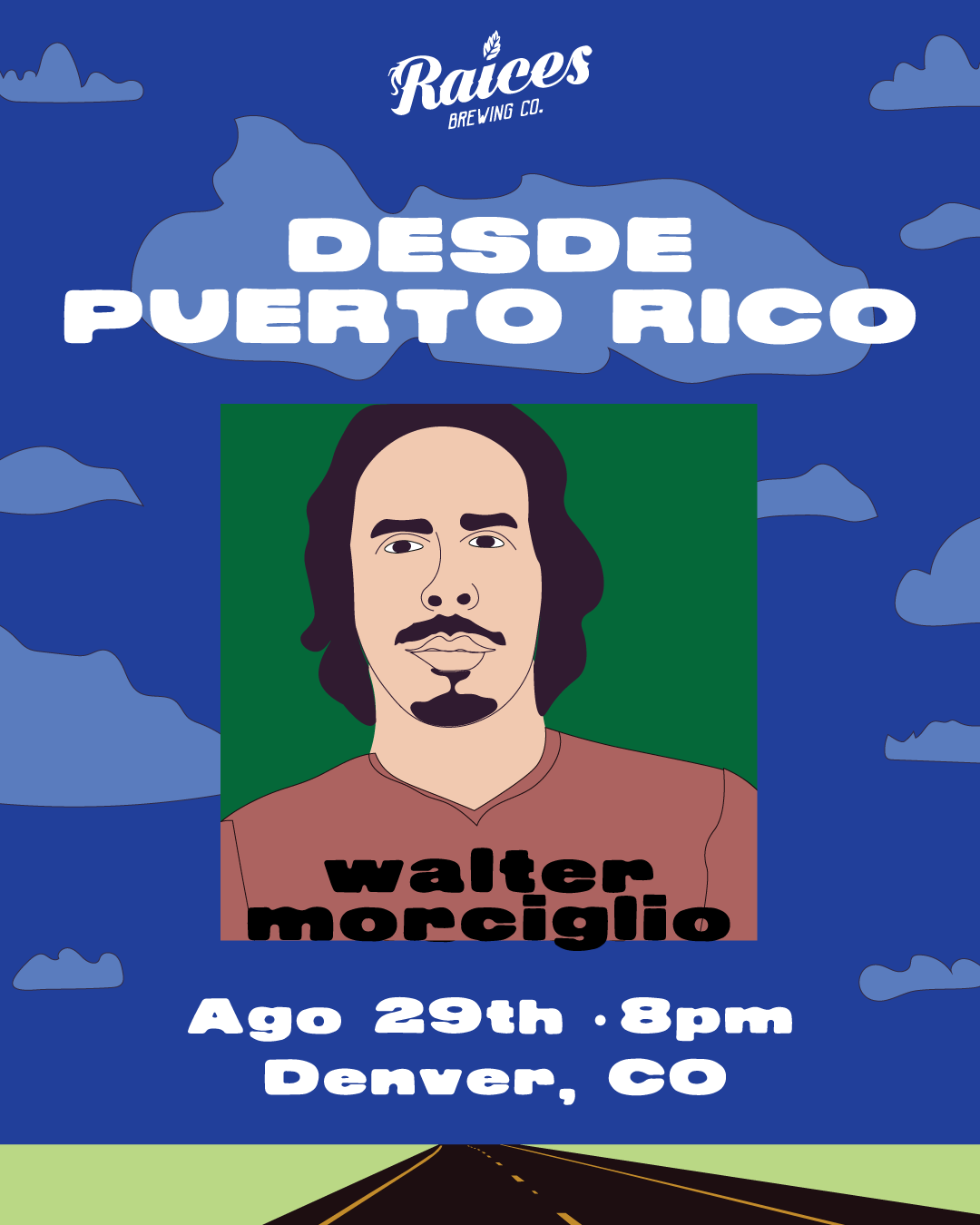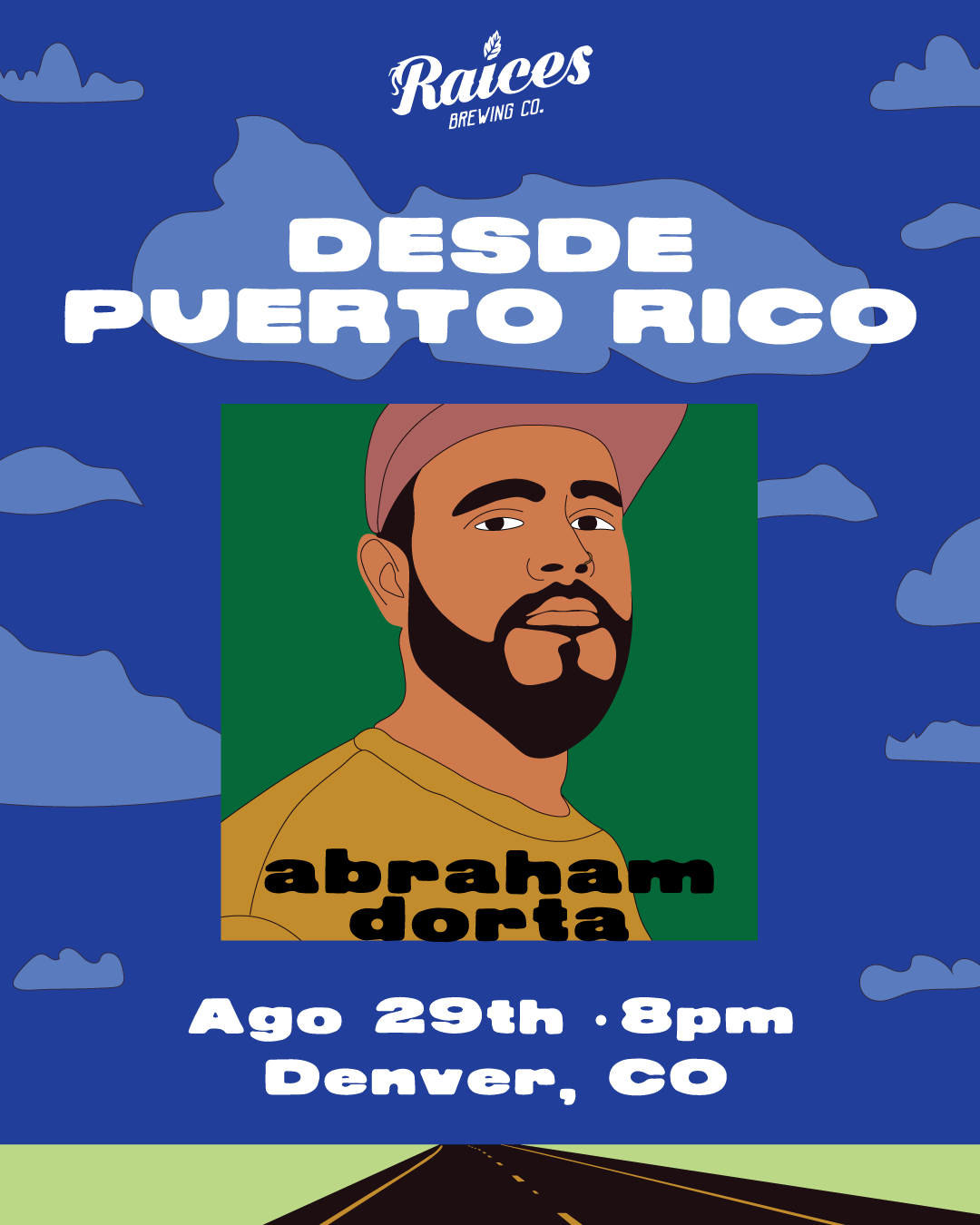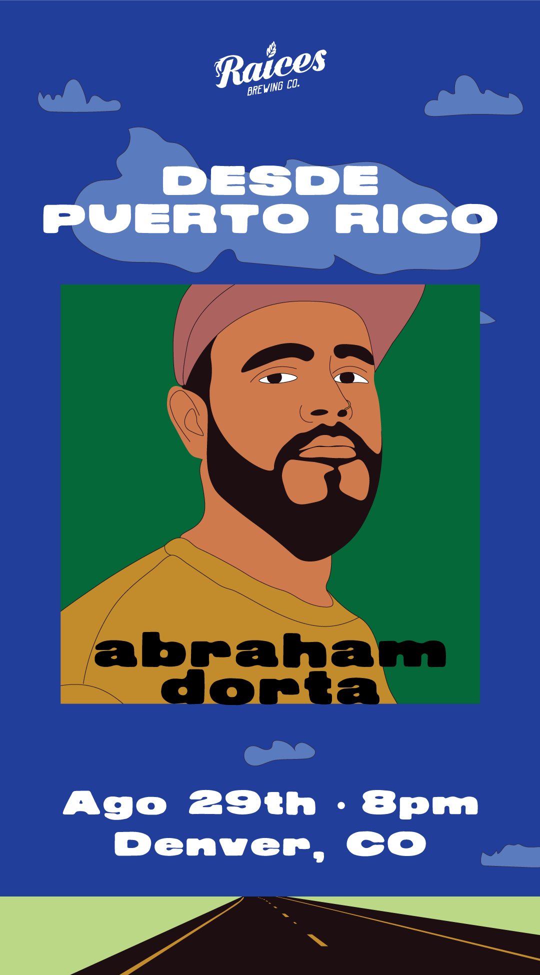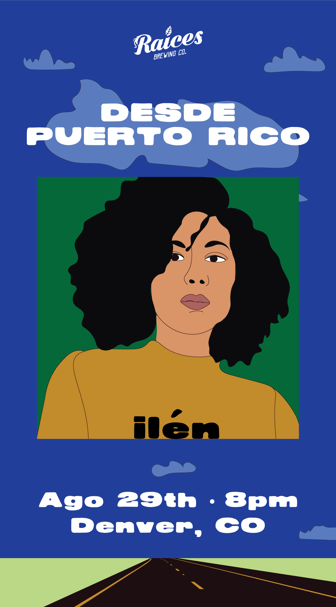 Diseño y concepto de showcase de artistas de PR para concierto en Raices Brewing en Denver, Colorado